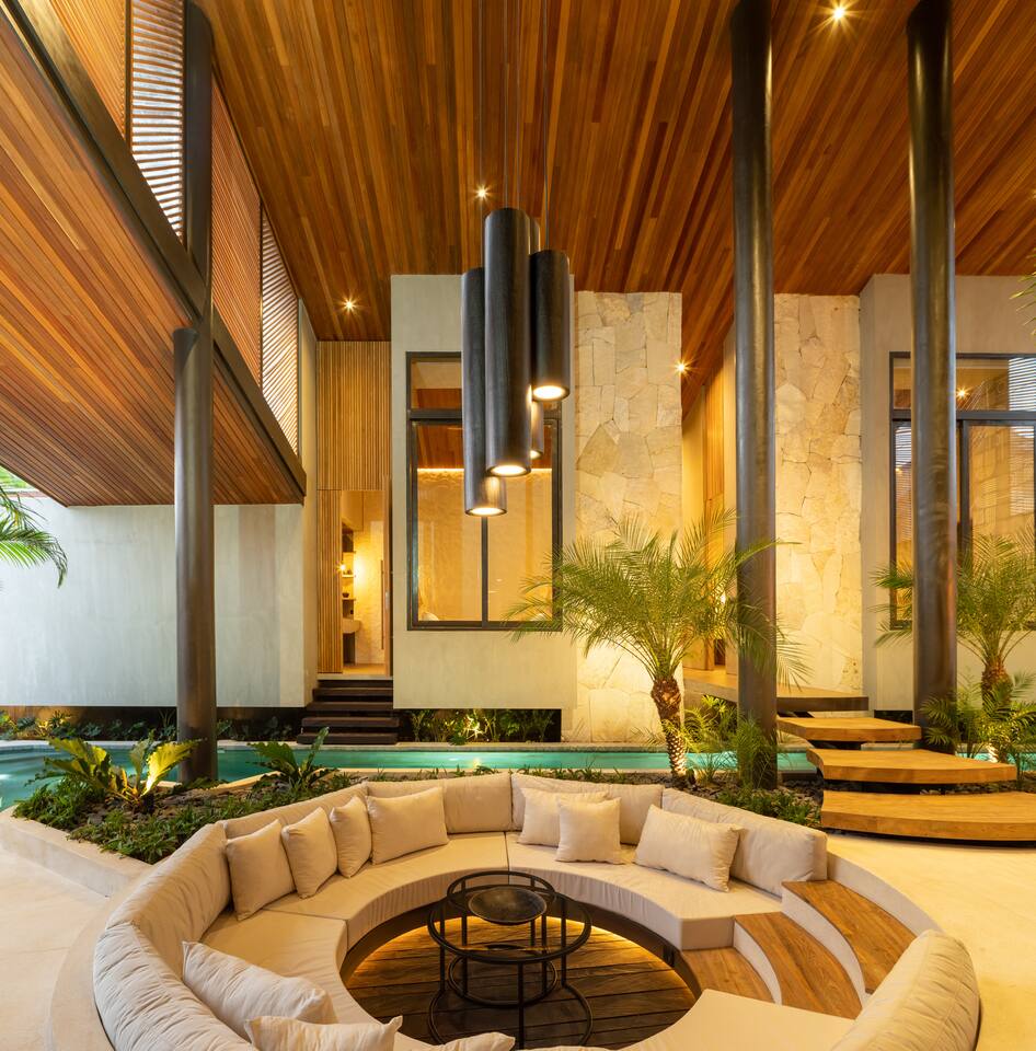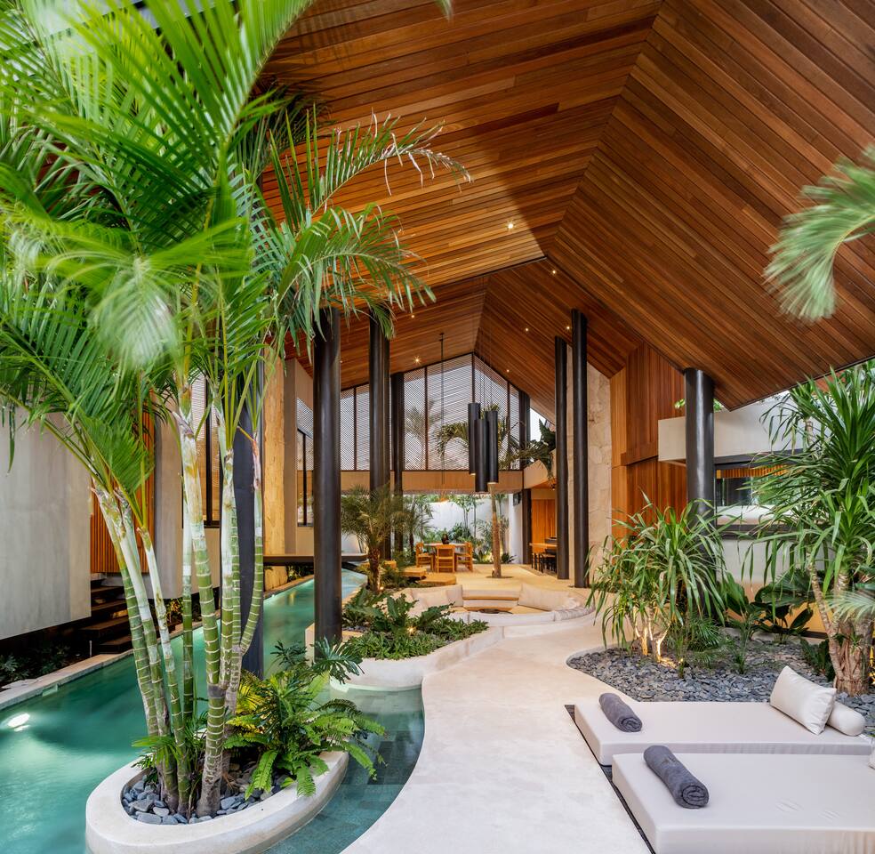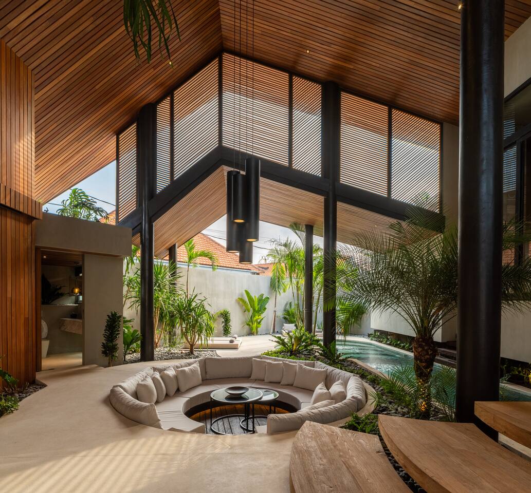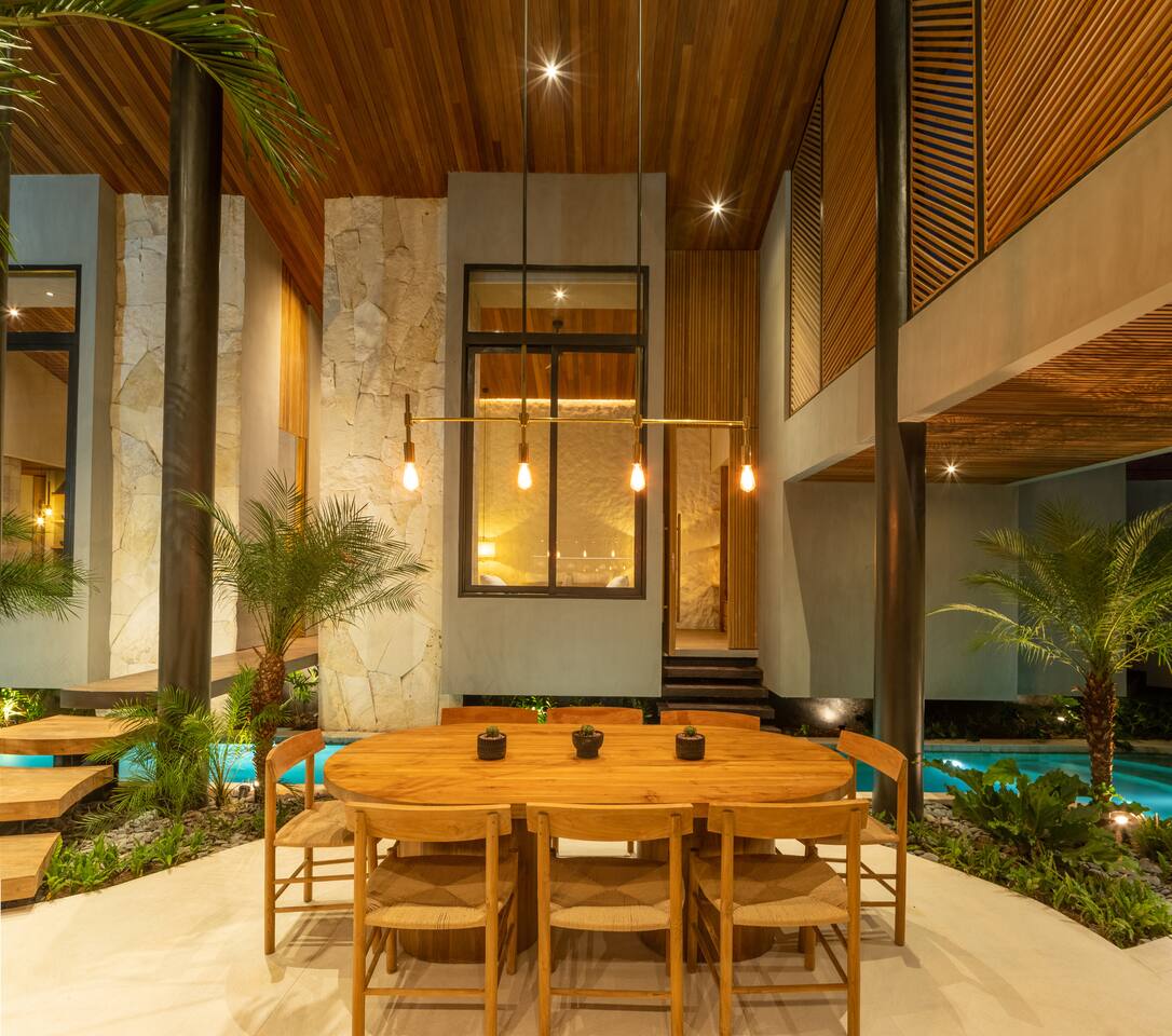 Spread across 400 square meters, Villa Levante is structured around its sunlit 25-meter swimming pool, which links two distinct wings: Living Wing – Sunken lounge with custom seating & Bluetooth audio – Dining space filled with daylight – Modern kitchen with premium appliances Sleeping Wing – Master bedroom with king bed, ensuite indoor-outdoor bath and circular soaking tub – Two guest bedrooms with king beds, direct pool access and open-air en-suites Natural textures, high ceilings and sliding glass panels keep the interiors breezy and bright. The villa is ideal for couples, small groups, or anyone seeking inspiration in simplicity.